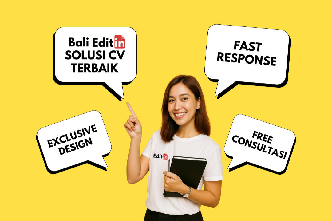 Bali Editin merupakan penyedia layanan jasa edit CV secara online yang berfokus pada penyusunan CV yang rapi, profesional, dan sesuai dengan standar rekrutmen, guna membantu pencari kerja menampilkan kualifikasi terbaiknya secara efektif.